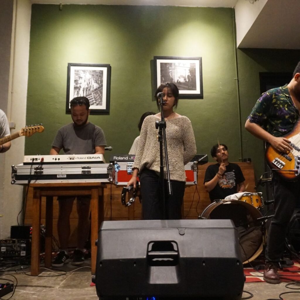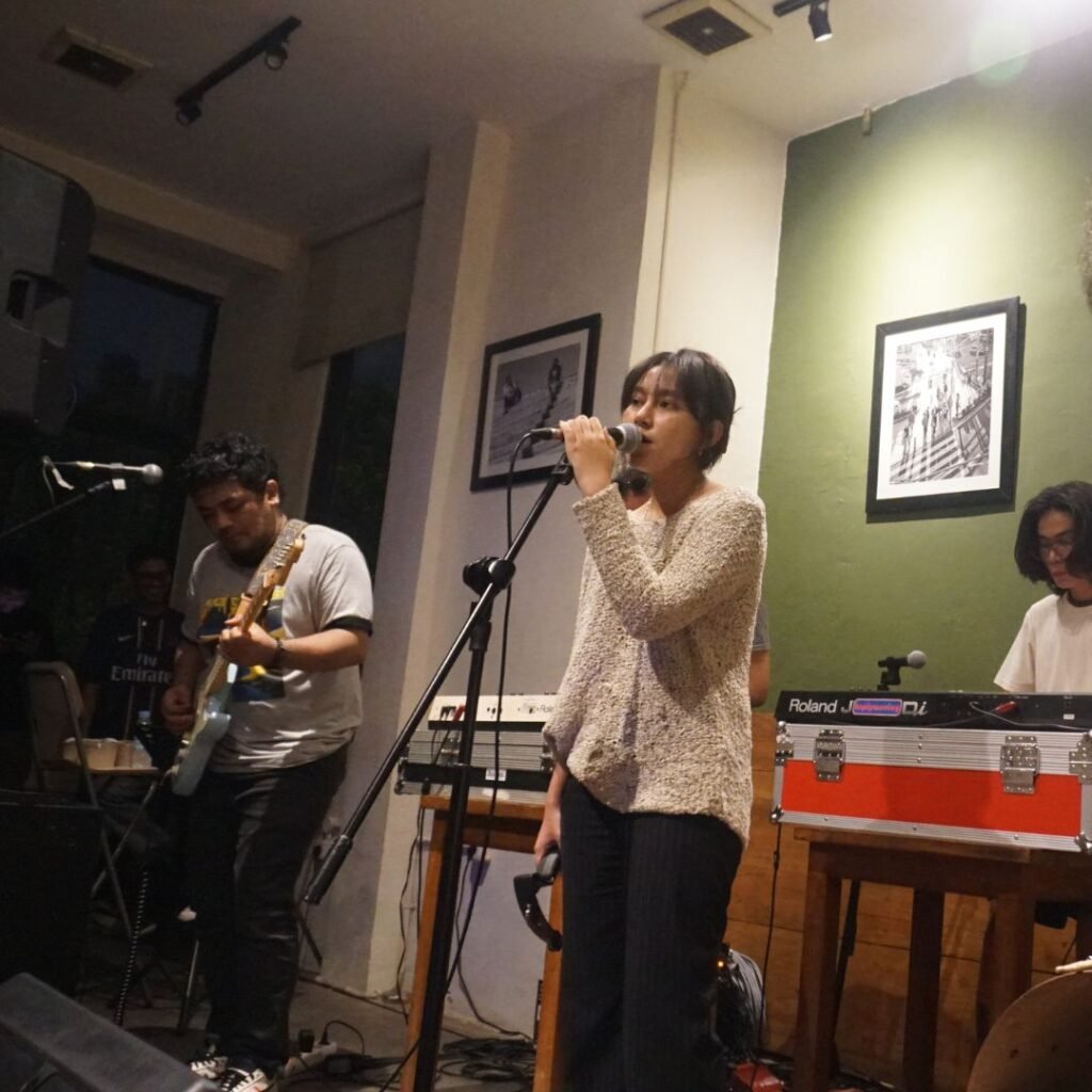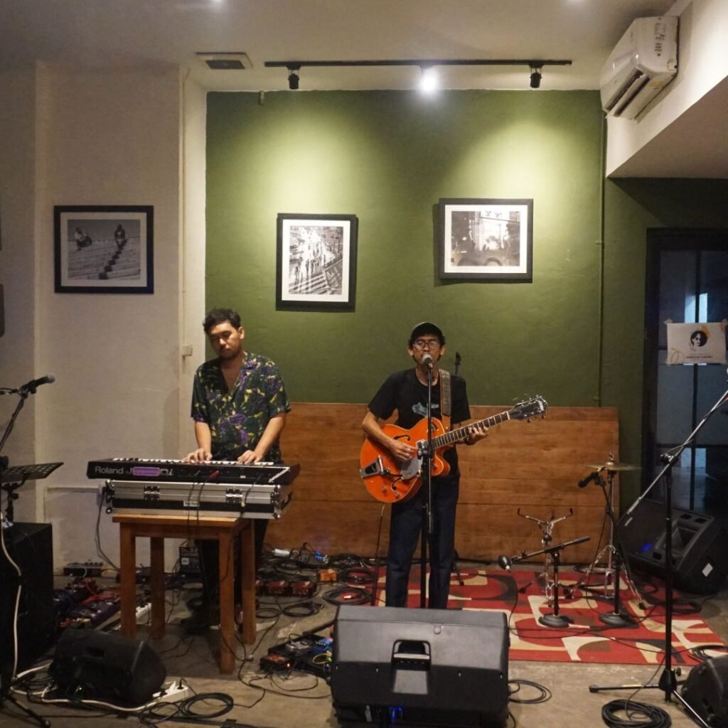 Namun, seperti dalam banyak gigs live, kendala teknis tak bisa dihindari. Kami tiba sekitar pukul 19.45, namun acara baru dimulai sekitar pukul 20.45. Ternyata, masalah utama datang dari drumset yang tidak tiba tepat waktu. Beruntung, komunitas musik yang solid di coffeewar bergerak cepat. Dado Darmawan dari Kobra Musik segera menghubungi Rey dari Maspam Records, yang tak jauh dari coffeewar, untuk meminjam drumset sehingga acara dapat dimulai. Ini adalah bukti nyata dari semangat gotong royong dalam skena musik independen.